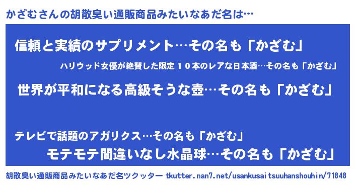 | ヘコむあだ名 | 『豆乳』『かざお』『かざにゅー』 |