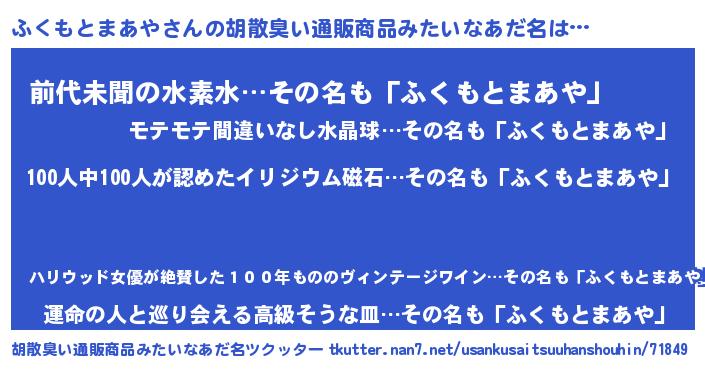 | 意味不明あだ名 | 『眠気覚ましガムふくもとまあや味』 |