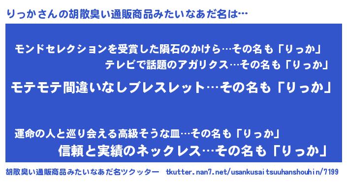 | ヒーロー風カッコイイあだ名 | 『スーパーリッカ』『慈愛の使者りっか』 |