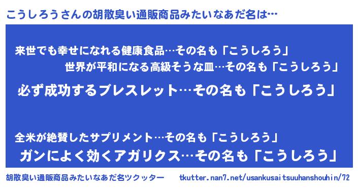 | ヘコむあだ名 | 『こうふぇ~』『こうしろう(苦笑)』 |