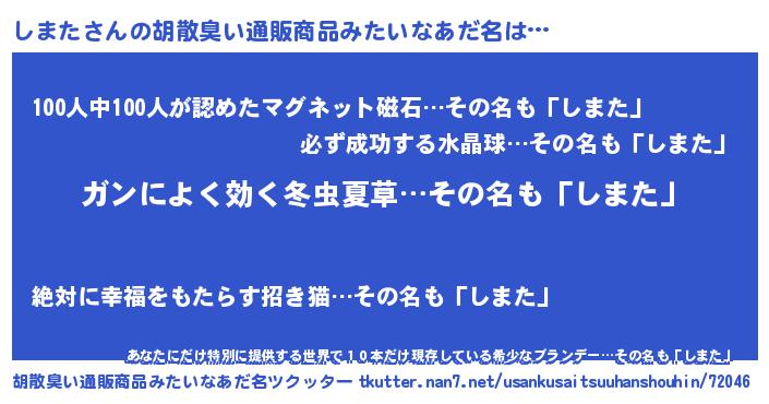 | 意味不明あだ名 | 『自称しまた』『眠気覚ましガムしまた味』 |
