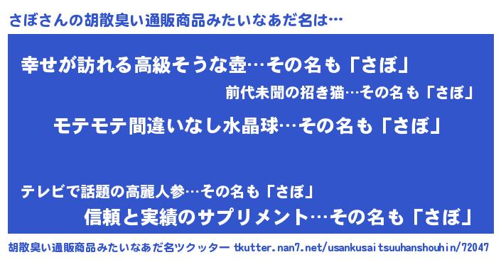 | 自動車の名前っぽいあだ名 | 『サボティマ』『サクア』 |