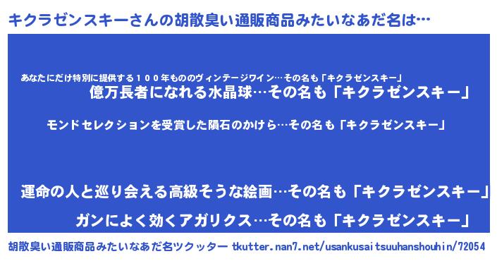 | ヒーロー風カッコイイあだ名 | 『慈愛の使者キクラゼンスキー』 |