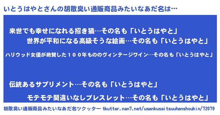 | 意味不明あだ名 | 『住所不定無職いとうはやと(3歳)』 |
