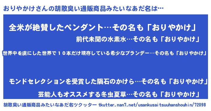 | 恥ずかしいあだ名 | 『オリリンリン』『オリヤカケデラックス』 |