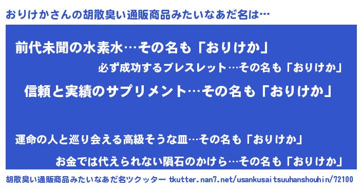 | 意味不明あだ名 | 『とにかく怪しいおりけか』 |