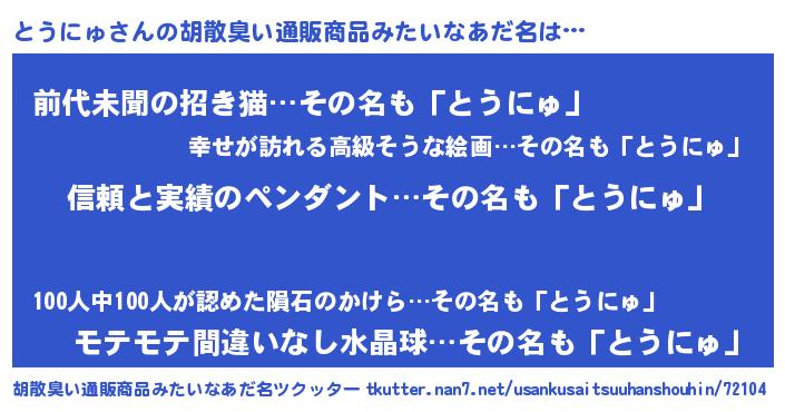 | 伝説のあだ名 | 『孤高の遊び人とうにゅ』 |