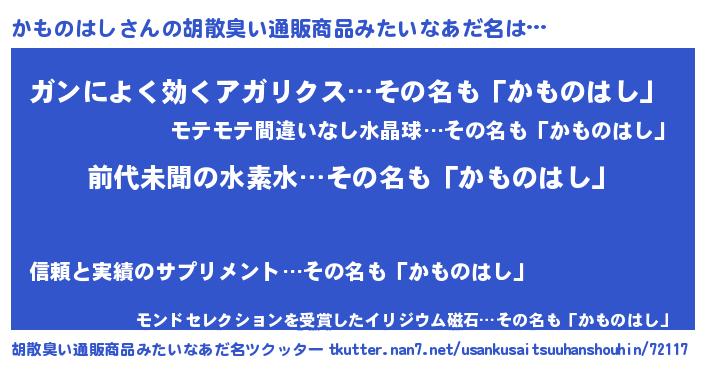 | 意味不明あだ名 | 『永久保存かものはし』『自称かものはし』 |