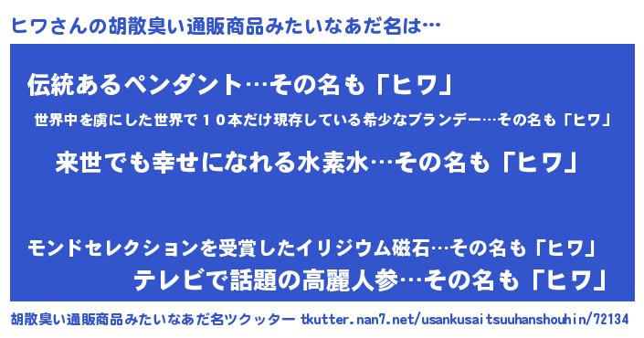 | 意味不明あだ名 | 『永久保存ヒワ』『とにかく怪しいヒワ』 |