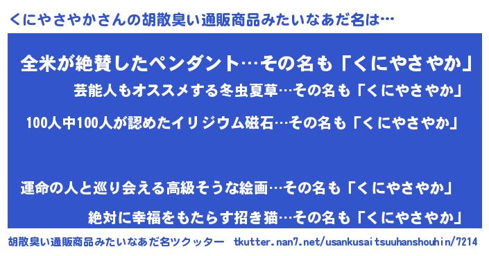 | ヘコむあだ名 | 『くに太郎』『くにやさやか(震え声)』 |