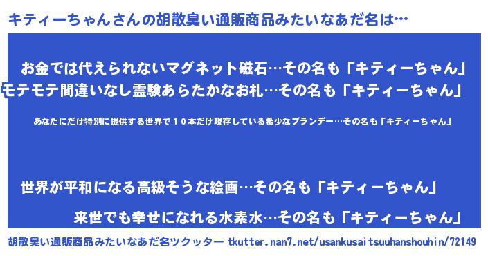 | ヘコむあだ名 | 『キティーちゃん(遠い目)』『キテにー』 |