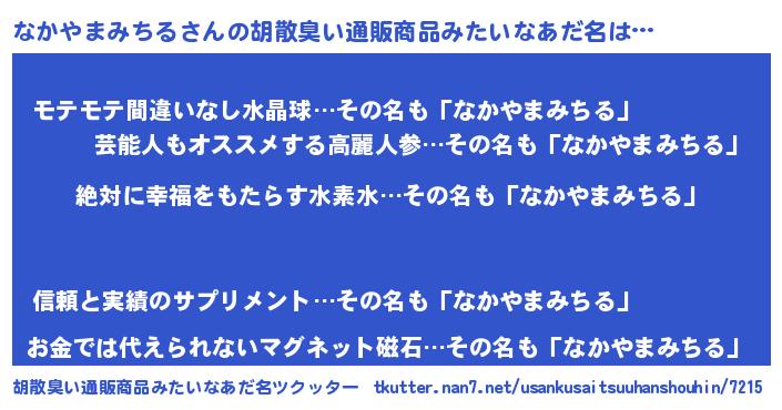 なかやまみちるさんの胡散臭い通販商品みたいなあだ名をツクッター!