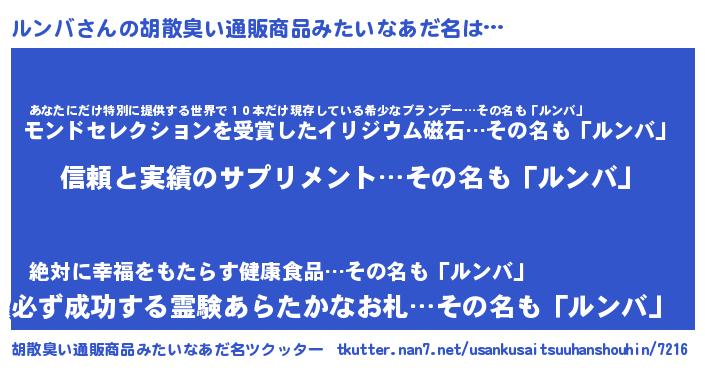 | 意味不明あだ名 | 『とにかく怪しいルンバ』 |