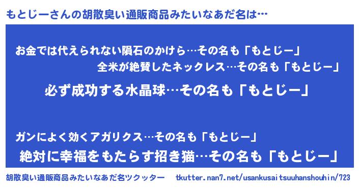 | 意味不明あだ名 | 『ペロリンもとじー』『永久保存もとじー』 |