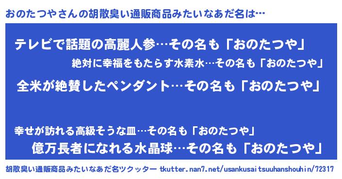 | 意味不明あだ名 | 『とにかく怪しいおのたつや』 |