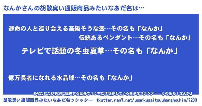 | ヘコむあだ名 | 『なまこ酢』『なん太郎』 |
