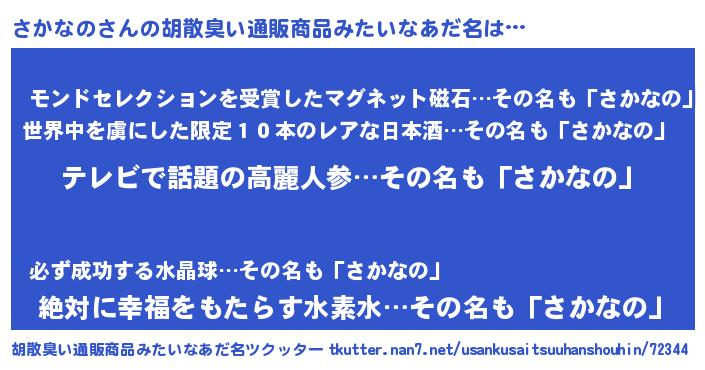 | ヘコむあだ名 | 『さかなの(小並感)』『さかふぇ~』 |