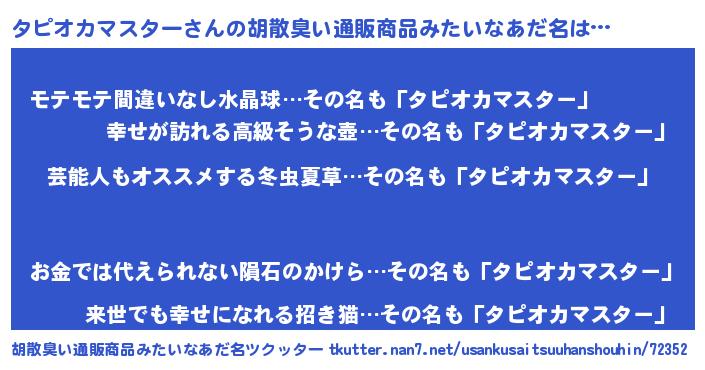 | ヘコむあだ名 | 『タピっふぃ~』『タピオカマスター(爆)』 |