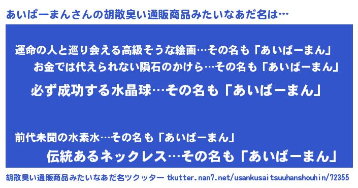 | 意味不明あだ名 | 『ペロリンあいばーまん』 |