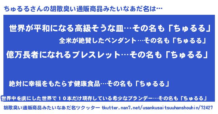 | 女子向けラノベタイトル風あだ名 | 『ちゅるるの玉の輿計画!』 |