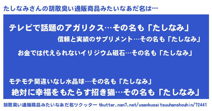 | ヘコむあだ名 | 『たしなみ(爆)』『たしぷりん』 |