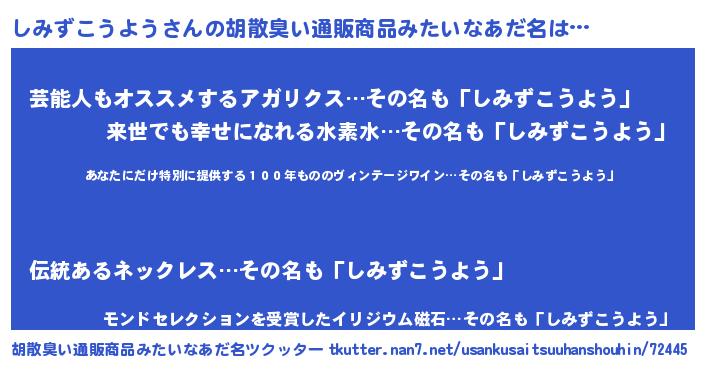 | 男性向けラノベタイトル風あだ名 | 『この素晴らしい世界にしみずこうようを!』 |