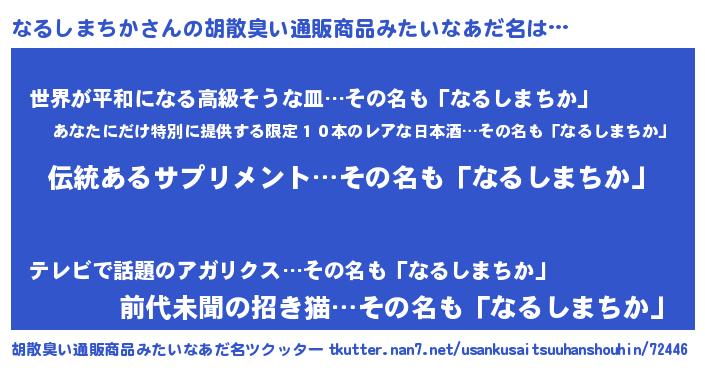 | 意味不明あだ名 | 『とにかく怪しいなるしまちか』 |