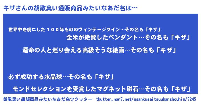 | 意味不明あだ名 | 『キザフォーエバー』『ヨモギ科キザ属』 |