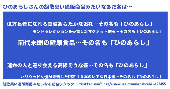 | 意味不明あだ名 | 『永久保存ひのあらし』 |