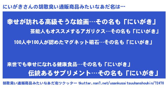| 欧米人風あだ名 | 『ダニエルにいがき』『ウサインにいがき』 |