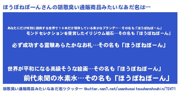 | ヘコむあだ名 | 『ほうっふぃ~』『ほうぼねぼーん(苦笑)』 |