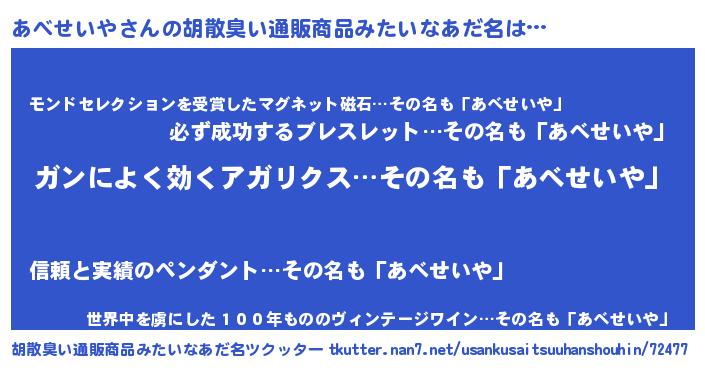 | 意味不明あだ名 | 『自称あべせいや』『ペロリンあべせいや』 |