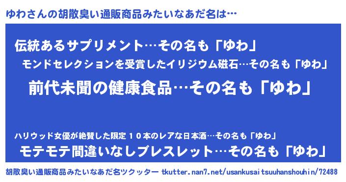 | ヘコむあだ名 | 『ゆわ(爆)』『ゆわを』『ゆわふぇ~』 |