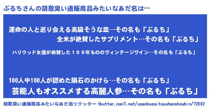 | 料理風あだ名 | 『ぶるちのカルパッチョ風』 |