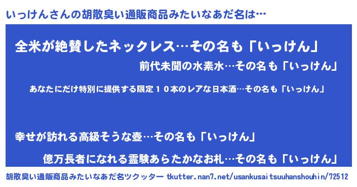 | 恥ずかしいあだ名 | 『イッリンリン』『プリティーいっけん』 |