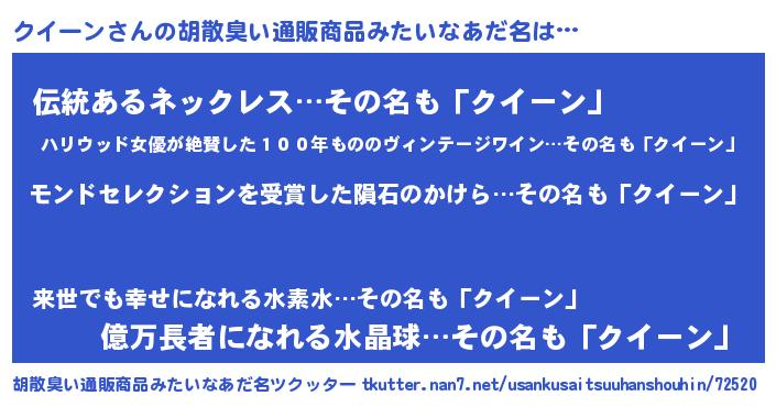 | ヒーロー風カッコイイあだ名 | 『慈愛の使者クイーン』『銀牙騎士クイ』 |