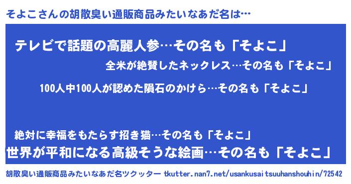 | 意味不明あだ名 | 『眠気覚ましガムそよこ味』『自称そよこ』 |