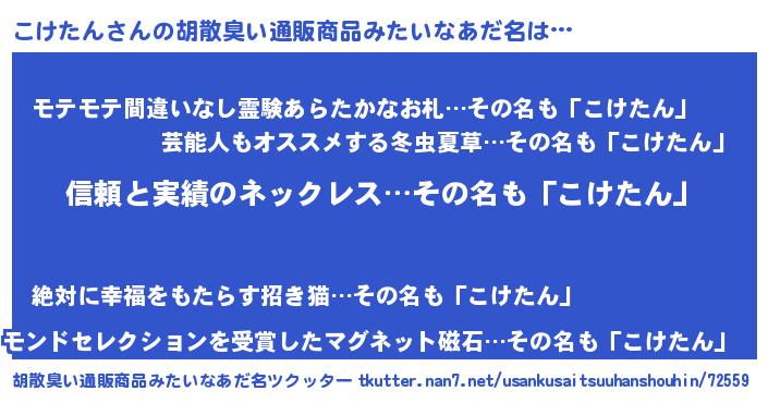 | ポケモン風あだ名 | 『ヒコケタン』『コケゴンZ』 |