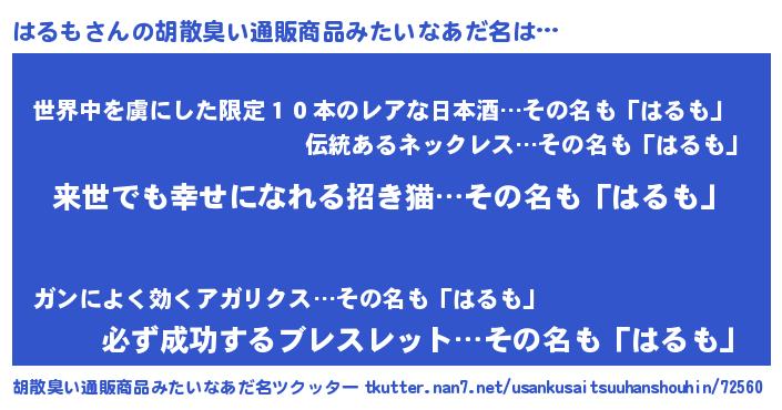 | 意味不明あだ名 | 『永久保存はるも』『エリンギ科はるも属』 |