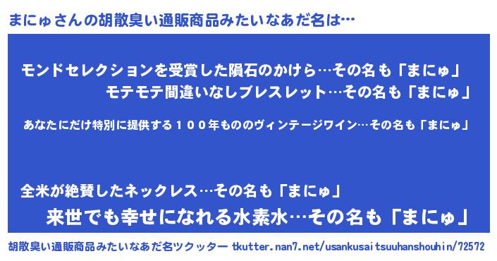 | 意味不明あだ名 | 『住所不定無職まにゅ(9歳)』 |