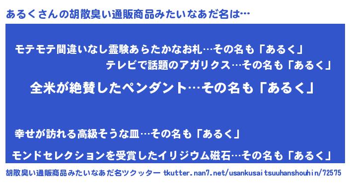 | 意味不明あだ名 | 『とにかく怪しいあるく』『自称あるく』 |