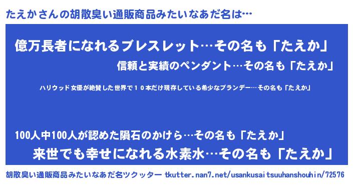 | ヘコむあだ名 | 『たえっふぃ~』『たえか(小並感)』 |