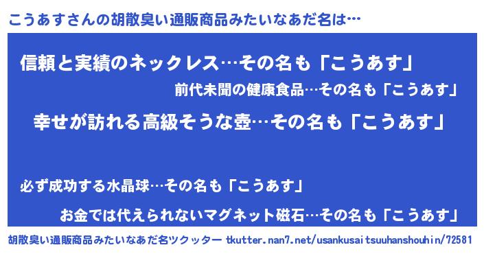 | 意味不明あだ名 | 『こうあすフォーエバー』 |