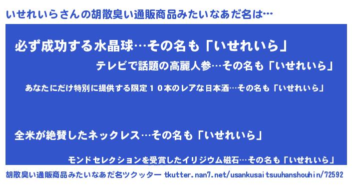 | 意味不明あだ名 | 『住所不定無職いせれいら(47歳)』 |