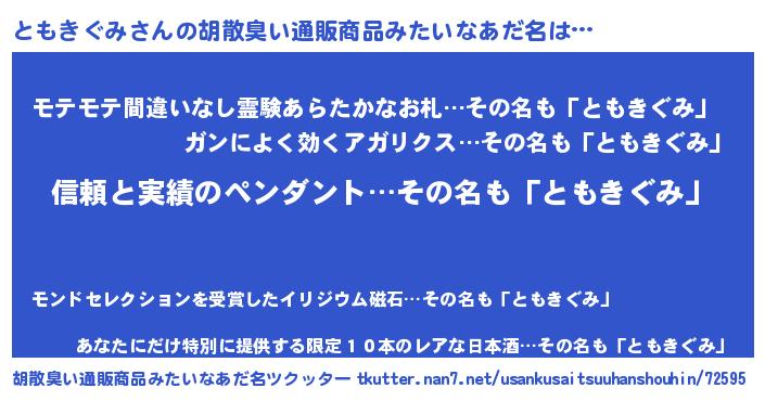 | 女子向けラノベタイトル風あだ名 | 『ともきぐみは平凡を望む』 |