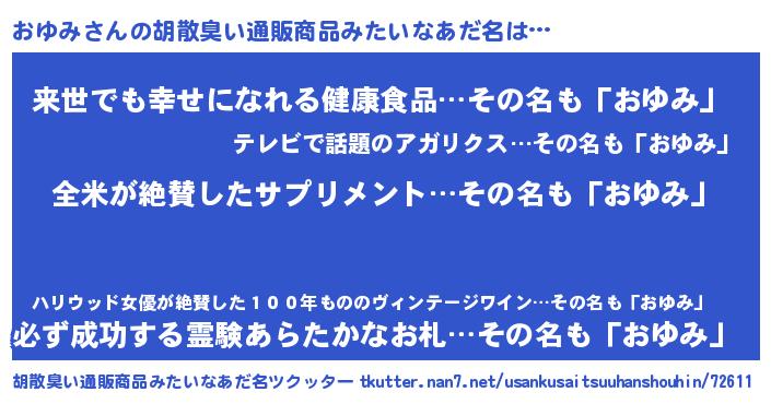 | 意味不明あだ名 | 『とにかく怪しいおゆみ』『自称おゆみ』 |
