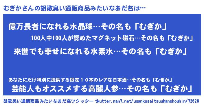 | 欧米人風あだ名 | 『ダルビッシュむぎか』『マイケルむぎか』 |