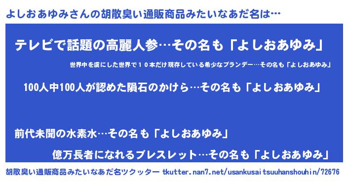 | ヘコむあだ名 | 『よしもー』『よしおあゆみ(笑)』 |