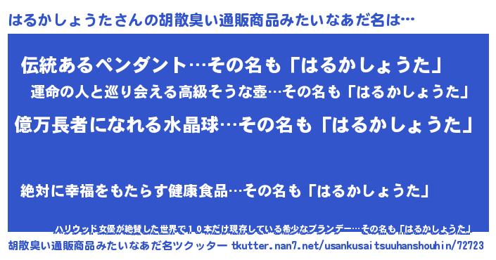 | 男性向けラノベタイトル風あだ名 | 『はるかしょうたに滅ぼされるだけの簡単なお仕事です』 |