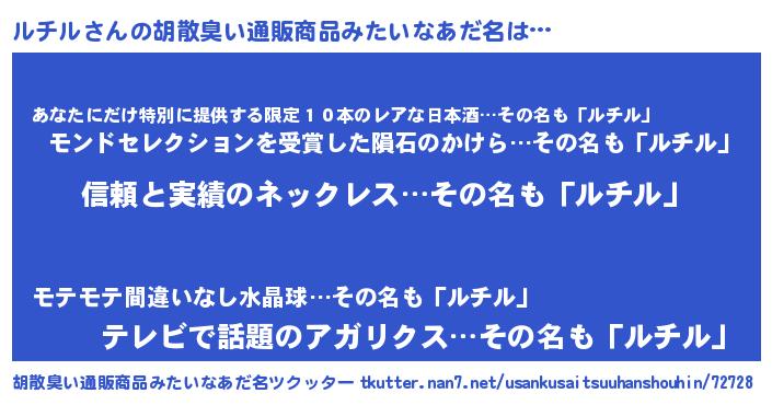| 意味不明あだ名 | 『とにかく怪しいルチル』『自称ルチル』 |